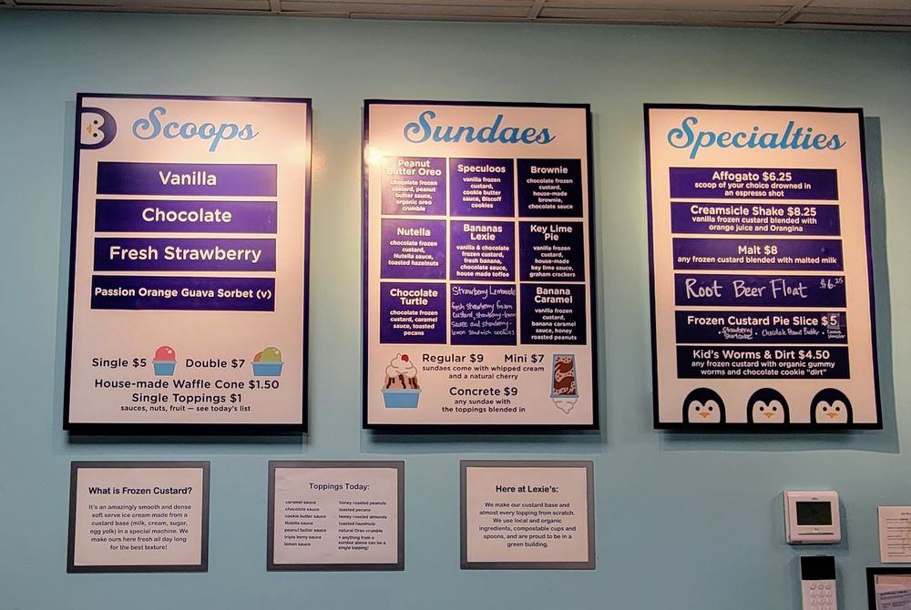 Lexie's Frozen Custard Menu